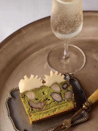 北海道産の生乳を使用した生クリームを生地に加えることで、従来品よりしっとり、そしてよりリッチな味わいに。そして宇治抹茶の程よい渋みと上品な風味を生かすため、きび糖を使用して素朴でナチュラルな甘みを引き出しています。焼き上げたパウンド生地の上には大粒の丹波栗の甘露煮を乗せ、その上からチーズケーキ生地を手作業で搾り出します。