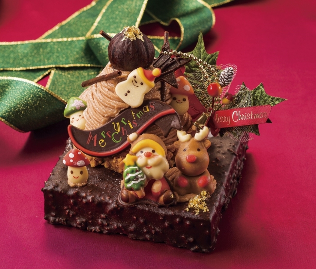 ほろ苦いキャラメルが香るアップルパウンドケーキをアーモンド入りのチョコレートでコーティング。ツリーに見立てたモンブランには甘酸っぱいカシスのムースをしのばせ、さわやかな甘さに仕上げました。お二人でも楽しめるサイズでご用意いたします。