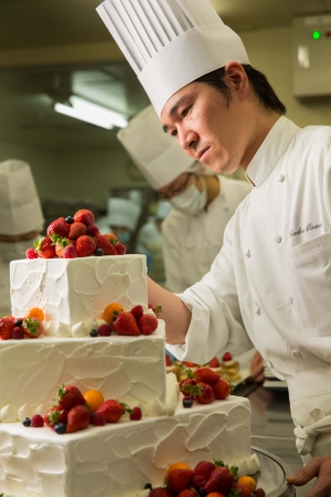辻製菓専門学校フランス エスコフィエ校を卒業後、「サロン・デュ・ショコラ」で注目を浴びたフランスのショコラティエ「プラリュ」にて研鑽を積み、製菓学校講師を経て1999年パークハイアット東京に入社。2006年からはスーシェフとして、幅広い世代の方にお召し上がりいただけるスイーツづくりに尽力しました。2013年4月よりオリエンタルホテル 東京ベイのペストリーシェフに就任。五つ星ホテルや海外で培った経験を活かし、甘みを控えた見た目と味の双方から楽しめる品のあるスイーツをご提供いたします。