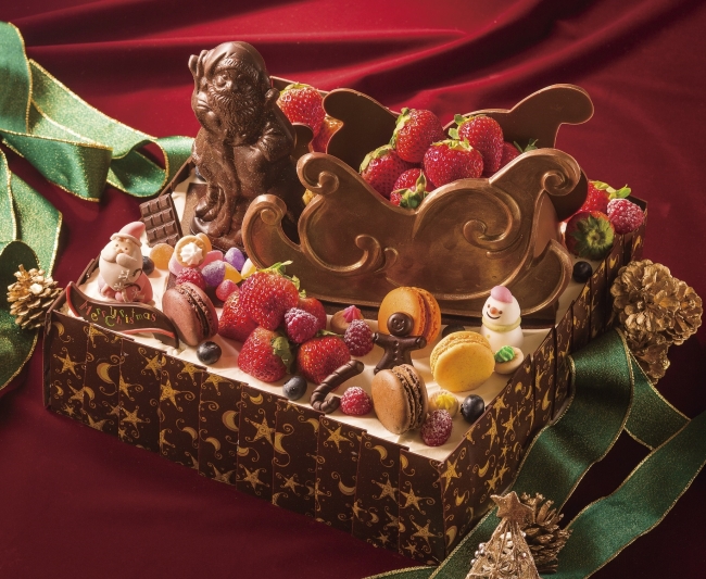 厳選素材のみを贅沢に使用したプレミアムショートケーキ。きめ細かいしっとりとしたスポンジに、苺は栃木県産のスカイベリー(R)、チョコレートは全てフランス産オーガニックを使用。サンタとソリの中からはお菓子がいっぱい溢れ出します。クリスマスの夜のワクワク感をイメージした夢あふれるケーキは、ご友人やご家族とのパーティにぴったりです。