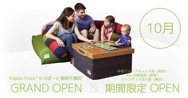米国ビーズソファブランド「Yogibo」の日本総代理店、株式会社Yogibo Japan(代表取締役:木村誠司)は、東京、岐阜、神奈川にYogibo Storeを4店舗オープンいたします。