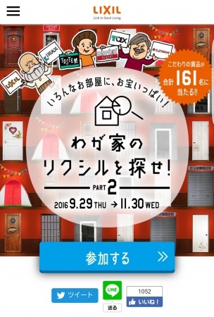 住まいと暮らしの総合住生活企業である株式会社LIXIL(本社:東京都千代田区、社長:瀬戸欣哉)は、様々なジャンルに富んだ賞品が当たるプレゼントキャンペーン『ロゴを見つけて、お宝ゲット!わが家のリクシルを探せ!Part2 』を9月29日(木)より開始いたします。