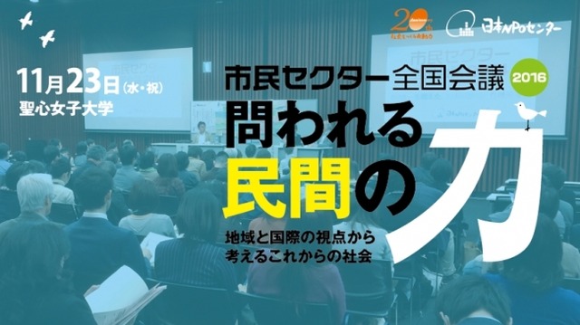 「市民社会を創出する」という視点から社会課題の解決にむけ、NPO法人、公益法人、社会福祉法人、生協、労働組合など、分野を超えて対話・発信できる場として2002年から隔年で開催。2016年は11月23日に聖心女子大学を会場に、いま問われる市民の力について、さまざまなゲストを招き議論します。