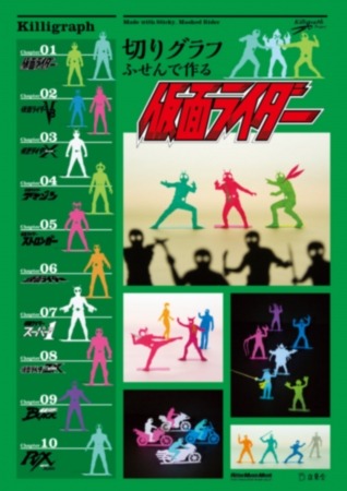 オフィスなどでよく活用される“ふせん用紙”を切り抜いて、キャラクターの切り絵を作る書籍“切りグラフ”シリーズ。第一弾の「ウルトラマン&ウルトラ怪獣」に続くのは、ウルトラマンと人気を二分する正義のヒーロー・仮面ライダーです。本書では『仮面ライダー』から『仮面ライダー BLACK RX』までの“昭和ライダー”をフィーチャー。仮面ライダーたちはもちろん、ライダーの敵である怪人の型紙も用意しています。作り方は簡単、本書についた型紙を当てて、それに沿って切り抜くだけ。それだけで、ライダー対怪人、戦闘員に囲まれるライダーなど、さまざまなシチュエーションを作ることが可能です。ふせんとカッターを使って、あなただけの仮面ライダーの世界を切り出してください。