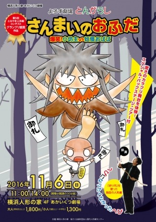 横浜人形の家は、11月6日(日)あかいくつ劇場にて、よろず劇場とんがらし「さんまいのおふだ」を上演します。