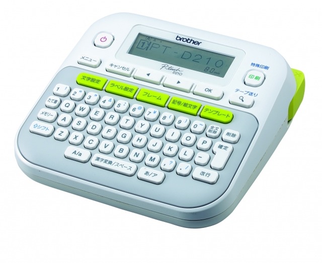 ブラザーは、家庭向けラベルライター「PT-12」の後継機種として、内蔵コンテンツの一新や液晶のコントラストを使用シーンに合わせて調整できるなど、操作性が向上した「PT-D210」を投入する。