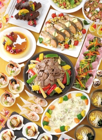 ズワイ蟹 / 海鮮丼 / ジンギスカン / 北海道ラーメン / ボロニヤハム バターミルクソース / サーモンのリエット / シーフード松前漬け / ホタテ貝のバジル風味 / カボチャのスープ / 鮭とアスパラガスのオランデーズ焼き / 鱈のワイン蒸し ホワイトカレーソース / カニクリームコロッケ / ズワイ蟹とポテトのフラン / 北海道ポテトの鶏そぼろあんかけ / 鮭のちゃんちゃん焼き / じゃがバター / たこ飯 / ポークホワイトスープカレー煮込み / 鱈のムニエル焦がしバターのジンジャーソース / 北海道ピザ / ズコット / 季節のタルト / 南瓜プリン / チョコレートケーキ / ティラミス / 木苺とチョコレートのケーキ / パンナコッタ / フルーツカクテル / チーズケーキ / クレームブリュレ / じゃが芋モンブラン / 南瓜ケーキ / 季節のパイ / 北海道牛乳プリン