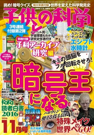 2016年のノーベル賞では、東京工業大学栄誉教授の大隅良典さんが医学・生理学賞を受賞。3年連続で日本人研究者が受賞する快挙に、子供たちの間でも科学研究への興味関心が集まっています。『子供の科学』11月号の付録は、創刊から92年分の誌面とともに、科学の新たな発見を一気に学べる特大年表。日本人で初めてノーベル賞を受賞した湯川秀樹さんから始まり、過去の日本人ノーベル賞受賞者の歴史やインタビュー記事を振り返ることができます。