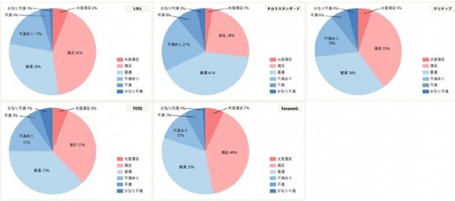 クリナップ、タカラスタンダード、TOTOは収納のしやすさで高評価を得ていますが、その他の項目でLIXILとPanasonicと総合評価に差がついています。