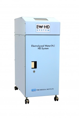 日本では世界トップクラスの透析治療が行われていますが、それでも透析患者の平均余命は一般人の約半分と短く、その死亡原因の28.3%(*)は脳心血管病が占めています。その原因として、治療中に発生する酸化ストレスや炎症が関与し、動脈硬化を促進していると考えられています。血液透析は水を大量に使用する治療法で1回あたり約120リットルの水を使用します。日本トリムはこの「水」に着目し、抗酸化性のある水素が含まれた電解水素水を透析液の希釈液に使用することで患者のQOL(生活の質)向上を目指しています。*日本透析医学会2014年統計調査「わが国の慢性透析療法の現況」より