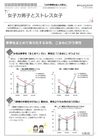 東京ガス株式会社都市生活研究所*1は、このたび、都市生活ミニレポート「女子力男子とストレス女子」・「40-50代主婦の家事レス化と20代主婦のエキスパート化」・「隠居シニアからアクティブシニアへ」の3種を発行しました。