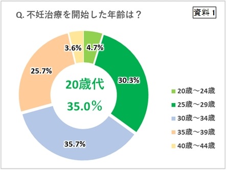 不妊治療経験者のうち20代で始めた女性が35.0%(資料1)