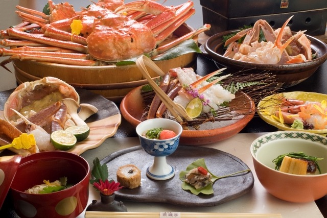 ・海が見える和室と旬の越前ガニのフルコースの夕食をご用意