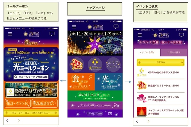 株式会社アイリッジ(本社:東京都港区、代表取締役社長:小田 健太郎、以下「アイリッジ」)は、大阪・光の饗宴実行委員会(構成:大阪府、大阪市、関西経済連合会、大阪商工会議所、関西経済同友会、大阪観光局、光のまちづくり推進委員会)が主催する「大阪・光の饗宴2016」の公式アプリを、一般社団法人大阪・光の饗宴(代表理事:橋爪紳也・岡智恵子)と共同企画・開発し、2016年10月20日(木)より提供を開始しました。