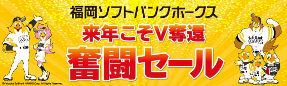 博多マルイでは、10月21日(金)~23日(日)の3日間、「福岡ソフトバンクホークス 来年こそはV奪還奮闘セール」と題したセールを開催いたします。