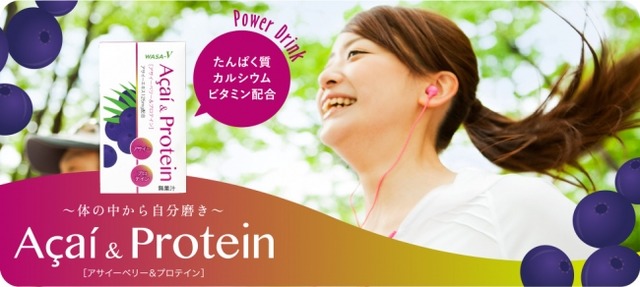 WASA-V Acai & proteinは体の中から自分磨きをテーマに、体に必要なたんぱく質・カルシウム・ビタミンを配合したアクティブな日々を過ごす人向けに開発されたPower drinkです。