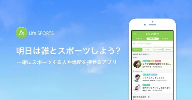 株式会社ライフスポーツ (所在地:東京都目黒区 代表取締役:中村俊一) は、気軽にスポーツができる世の中を創り、人々の運動不足解消・健康増進に貢献するため、10月24日、スポーツマッチングアプリ「Life SPORTS」のiOS版 / Android版をリリースいたしました。
