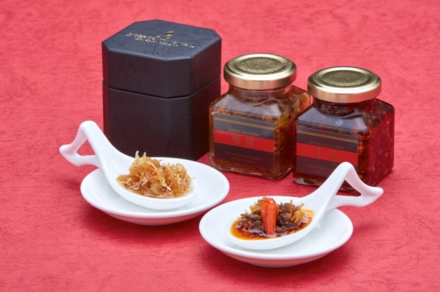 この「チャイナシャドーオリジナルXO醤」は、ブランド牛として名高い特産の石垣牛入り『牛醤(ぎゅうじゃん)』と石垣島近海のマグロ入り『鮪醤(まぐろじゃん)』の2種類をご用意。同レストランの料理長 須山 信秀によるオリジナルの配合で、それぞれに島唐辛子、石垣の蜂蜜、ピパーチなど石垣島産の食材を合わせた、石垣島ならではの食材の旨みが凝縮された贅沢な品です。