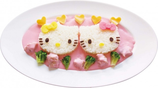 内容:キティとミミィのなかよしライス、ピンクのクリームシチュー風グラタンソース、 サラダ付