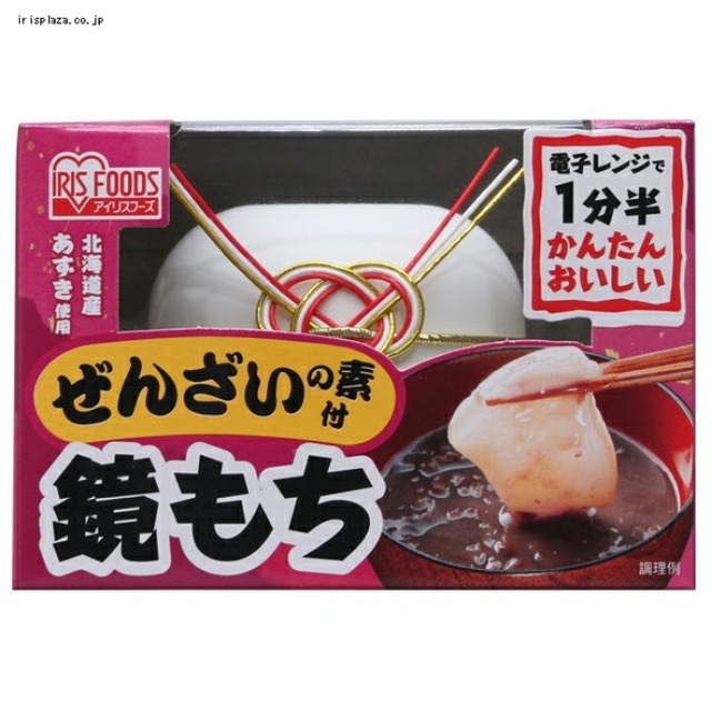 アイリスオーヤマ株式会社(本社:仙台市、代表取締役社長:大山 健太郎)のグループ企業である株式会社アイリスプラザ(宮城県仙台市青葉区中央2丁目1-7 アイリス青葉ビル TEL:0120-323-410)では、電子レンジでチンするだけで簡単ぜんざいが作れる「アイリスの鏡もち ぜんざいの素付 62g(もち27g、ぜんざいの素35g)」を2016年10月20日(金)に新発売しました。大切に飾った鏡もちを鏡開きの日に美味しいぜんざいとして食べることができます。