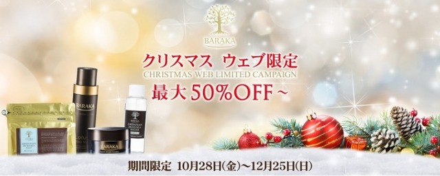 株式会社BARAKA(本社:東京都渋谷区松濤、代表取締役社長:尹志雲)は、 10月28日(金)~12月25(日)の間、BARAKAの人気アイテムを詰め込んだ、「クリスマスコフレ」をウェブ限定、期間・数量限定で販売いたします。