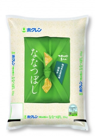 パッケージは、旭川地区の生産者が心を込めて生産したお米をおくりものとしてお届けしたいとの思いを、風呂敷のデザインとして表現したもの。