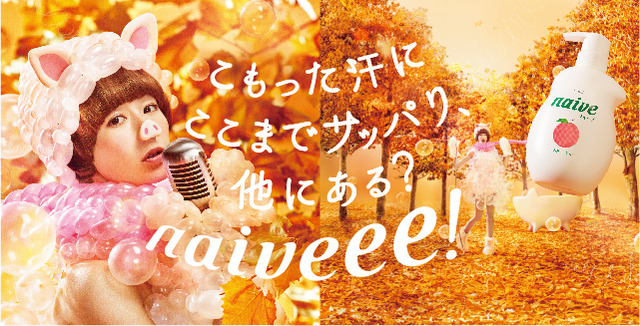 CMは、木村カエラさん扮するブタの「naiveee!(ナイーブ~)」が、空中ブランコからバスタブに降りてくるところからスタート。秋らしく色づいた木々と落ち葉を背景に、マフラーなど冬小物を身に付けたカエラさんが、くるっと回転すると、着ぶくれでこもった汗がサッパリするという、ナイーブボディソープの特長を可愛らしく表現しています。これまで「ナイーブ」が築き上げて来た「元気」「親しみやすさ」のイメージは踏襲し、ナイーブ」ブランドの特長である「サッパリ感」を、ファッショナブルでカエラさんらしいコミュニケーションで伝えています。