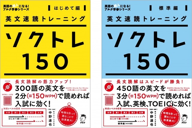 株式会社アルク(東京都千代田区 代表取締役社長:安嶋 明、以下アルク)より、新刊『英文速読トレーニング ソクトレ150【はじめて編】』『英文速読トレーニング ソクトレ150【標準編】』のご案内を申し上げます。