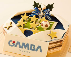 ガンバ大阪のホームスタジアムである『市立吹田サッカースタジアム』をイメージしました。9つの星型デコレーション(チョコレート)はガンバ大阪の過去優勝数(Jリーグ・天皇杯など)を表現しています。
