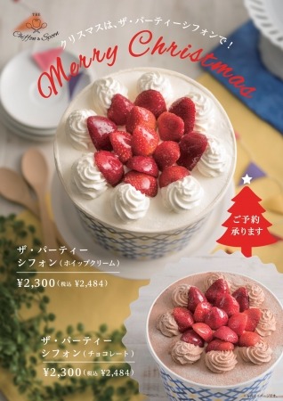 株式会社ダスキン(本社:大阪府吹田市、代表取締役社長:山村 輝治)が運営するスプーンで食べる新感覚のシフォンケーキ専門店『ザ・シフォン&スプーン』は、11月中旬からクリスマス向け商品として「ザ・パーティーシフォン」2種を販売します。