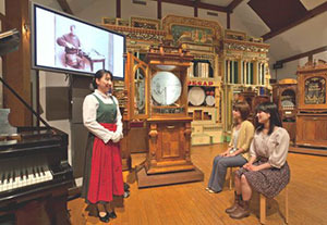 冬季は気温が下がり、オルゴールの音色がより澄んで美しく響きます。当館では、こうしたオルゴールの音色をじっくり鑑賞できるオルゴールコンサートの他、クリスマスのコンサートやからくり人形の実演を毎時30分毎に開催するなど、季節毎に様々な企画を行っています。