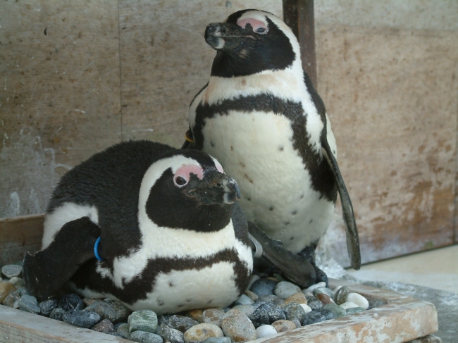南アフリカに暮らすケープペンギンは一度ペア(夫婦)になると、一生添い遂げると言われています。(※たまに例外もあるようです。ふと気づくと別のメスと仲良く巣穴に入っていることも!)ペア(夫婦)になったメスはやがて卵を産み、オスとメスが交代で40日間ほど温めます。(※たまに例外もあるようです。交代頻度に明らかな差があることも!)孵化したヒナはオスとメスが協力して育てます。(※例外は、ありません!たぶん!)