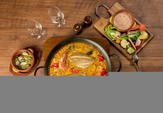 日本ではおめでたいときに食される鯛や海老に、彩り野菜をふんだんに使った見た目にも華やかな記念パエリアです。魚介の旨味が凝縮されたスープをしっかり吸わせてスープの旨味をしっかりと吸わせてお米のアルデンテに炊き上げた味わい深い逸品です。仕上げに作るソカラ(おこげ)のカリカリの食感と旨味もお楽しみください。