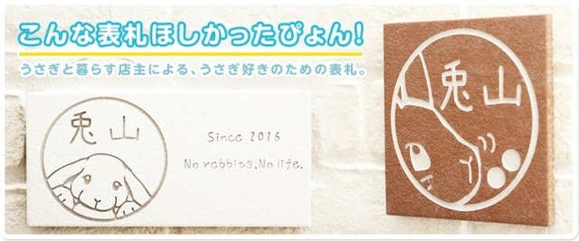 インターネットのはんこ屋さん「印鑑はんこSHOPハンコズ」は、かわいいうさぎのイラストを彫刻したウサギ好きのための表札「うさぎずかん『ぴょん札』」の販売を開始しました。うさぎの表札「ぴょん札」なら、文字だけでは伝わらない個性をたのしく伝えることができます。これからも私たちは「好き」という気持ちを反映した商品づくりをとおして、手にされた方が幸せな気持ちになったり笑顔になれる商品づくりに、よりいっそう努めてまいります。