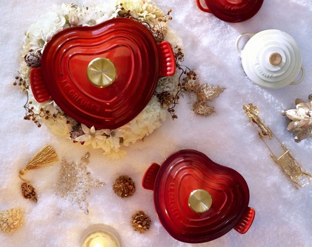 人気のストーンウェアシリーズからは、パーティーの名脇役となる製品が登場し、テーブルに飾るだけでクリスマス気分を盛り上げます。今年は「ミニ・ココット」がクリスマスバージョンとして華やかなゴールドノブになりました。チェリーレッドとホワイトのセットを特別価格にて販売いたします。
