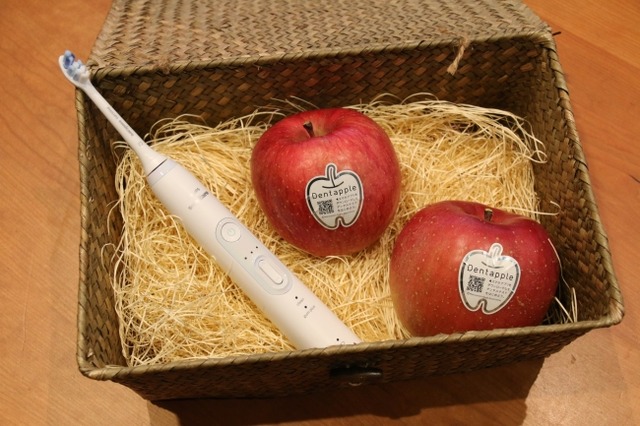 「デンタプル(Dentapple)」は、国内のりんごの消費量が減少傾向にある中、その解決策として、松本りんご協会が打ち出した、世界初の歯科検診機能付きりんごです。2015年11月8日(いい歯の日)の発売後、初回出荷分がわずか3日間で完売。その後も飛ぶように売れ、昨対比で155%の売上を記録するだけでなく、国内外多くのメディアから注目を浴び、そのメディア露出価値は5億円を超えるに至りました。今年のりんご商戦では、単にりんごの消費を促すだけでなく、これまでりんごを食べる機会が少なかった方にも、食べてもらうきっかけを創出するため、新たな戦略のもと、2016年11月8日より再販を開始いたします。