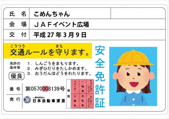 JAFでは、オリジナルコンテンツ「子ども安全免許証」などの活用により、優待施設と連携し、交通安全の普及に努めています。