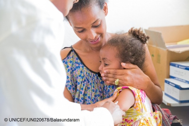 「はしかを過去のものにすることは、不可能ではありません」とユニセフ予防接種部門チーフのロビン・ナンディ は述べました。「私たちにはそれを可能にする手段と知識があります。私たちに足りないのは、どんなに遠く離れていたとしても、すべての子どもたちに予防接種を届けるという政治的意志です。この決意がなければ、子どもたちは簡単かつ安価に予防できる病気によって、命を落とし続けるのです」