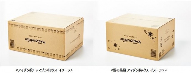 そして本キャンペーンにあわせ、ホリデーシーズン特別デザインのアマゾンボックスが数量限定で登場します。LINEスタンプでお馴染みの「アマゾンポチ」と「雪の結晶」の2種類のアマゾンボックスで商品をお届けします(特別デザインのアマゾンボックスは無くなり次第終了となります)。