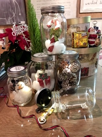 「Xmas Jar with LED」デコレーションの出来上がりです。