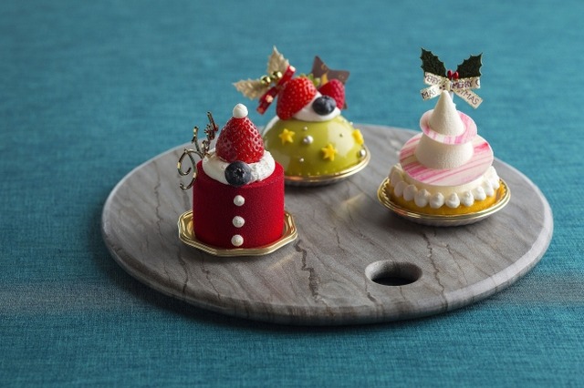 サンタクロースをモチーフに赤いチョコやベリーでキュートに飾り付けた『カシスショコラサンタ』や、レアチーズムースやホワイトチョコで真っ白なツリーに見立てた『レアチーズムース』など、クリスマスに向けて気分を盛り上げるスイーツをご用意しました。