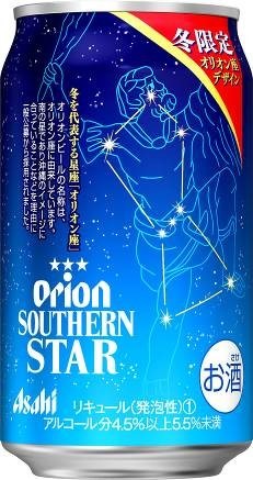 『アサヒ オリオンドラフト<冬限定オリオン座デザイン>』と『アサヒ オリオンサザンスター<冬限定オリオン座デザイン>』は、オリオンビールの社名の由来になった冬の星座「オリオン座」をあしらった冬限定のデザイン商品です。缶体裏面のデザインは、夜空いっぱいに輝く満点の星空の中に、冬の星座「オリオン座」を大きく配置しました。オリオンビールの社名は、オリオン座が南の空に見られる星座であることや、星は人々の夢や憧れを象徴していることなどの理由から、公募により決まりました。オリオンブランドから、冬限定のオリオン座デザイン商品を発売することで、冬のビール類需要の喚起を図ります。