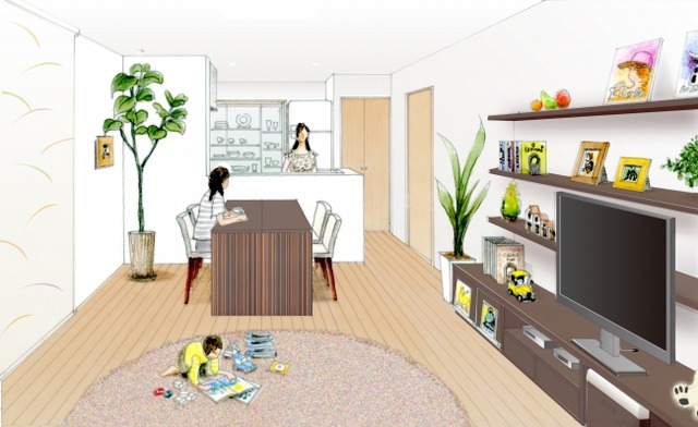 そして、上記コンセプトを元に、「子どもが自分から率先して様々なことをやりたくなるようなアイデア」を検討し、「リビング・ダイニング」「キッズスペース」について、家具やリフォーム等の商品を検討いたしました。 飯田GHDでは、これらの商品を設置した住宅を2017年中に販売する予定です。(*1)