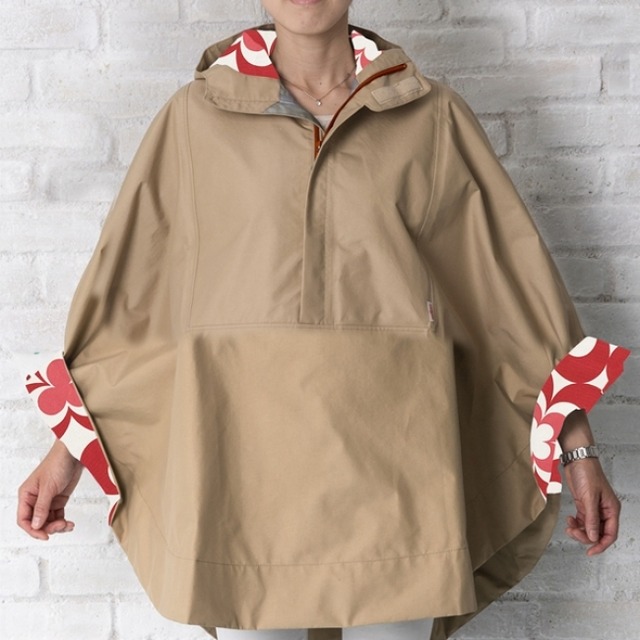 ●袖とフードの裏には北欧柄の生地を使用。 袖をまくればトレンチコートのように街歩きにも出かけられる可愛さに変身します。