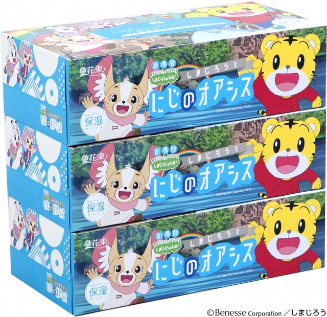 丸富製紙(株)の「花束 ライトローションティシュ アロエイン」シリーズより、2017年3月10日(金)より公開予定の『しまじろうと にじのオアシス』の映画ビジュアルをパッケージに施した、期間限定の「しまじろう ライトローションティシュ アロエイン 160W」が販売開始いたします。