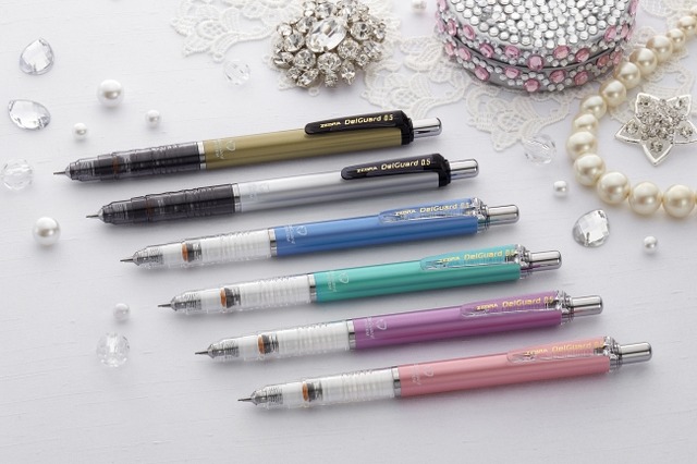 『デルガード』は2014年に発売した、“どれだけ力を込めても折れないシャープペン”です。発売以降累計で1,000万本を売り上げ、授業中や試験に使う学生に人気となっています。「芯が折れる」ことに不満を抱くのは男性が多い印象ですが、同じ不満を抱えている女性も多くいます。芯が折れるストレスを解消するだけでなく、ジュエリーをイメージしたカラーでデザイン性をアップすることで、女性ユーザーに楽しんで使っていただくことを目的としています。
