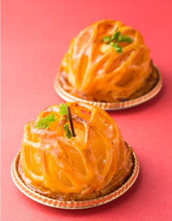 コンポートしたまるごとりんごを、網目状のパイに包んで焼きあげました。