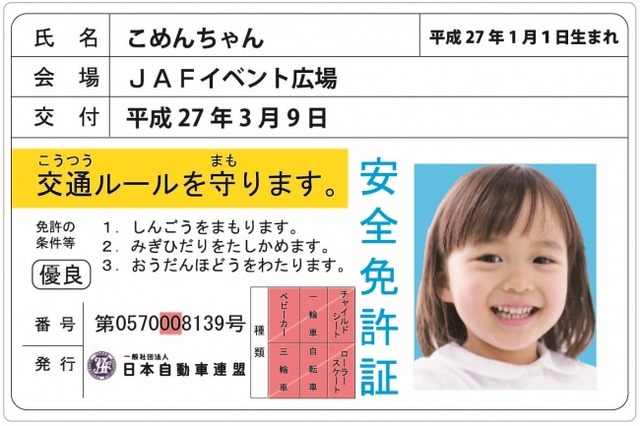 本イベントでは、時速5kmでのシートベルト効果体験ができる「シートベルトコンビンサー」、交通安全のクイズに答えて免許証そっくりのカードがもらえる大人気のJAFオリジナル「子ども安全免許証」の発行、チャイルドシート取り付けチェックアップ&相談コーナーなど交通安全を学べる内容が盛りだくさんです。