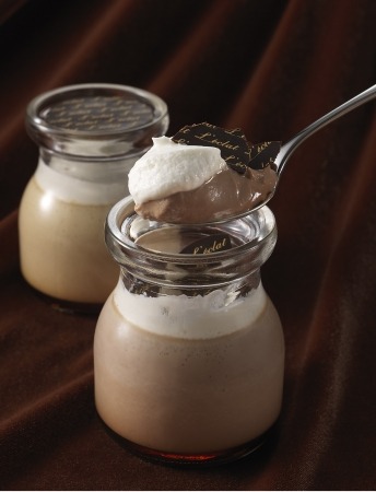 口どけ滑らかな味わいでカカオの風味をお楽しみいただきたいというコンセプトから生まれた、ショコラデザートの「クレーム・オ・ショコラ」。味は「カカオ」と「ショコラ」の2種類ご用意。ともにベースとなるクリームは、カカオマスで香りづけし、コクがありなめらかな味わいになるように仕上げました。トッピングには甘さ控えめのホイップクリームを、一番下にはほろ苦いキャラメルソースを入れており、3層のリッチな味わいを実現。また、割ってお召し上がりいただく、パリッとした食感の薄いプレートチョコレートをトップに添え、アクセントにしました。「ショコラ」には、ベースとなるクリームにもキャラメルにもチョコレートを加え、より一層チョコレートの風味をお楽しみいただけます。