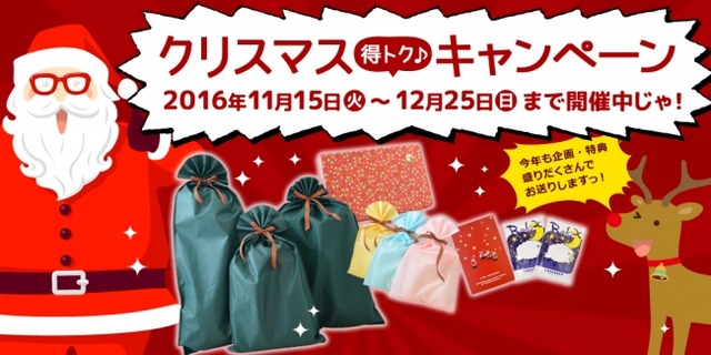 キャンペーン期間中、クリスマス仕様のギフトラッピングが無料!クリスマスプレゼントを贈る際に、ぜひご利用ください。